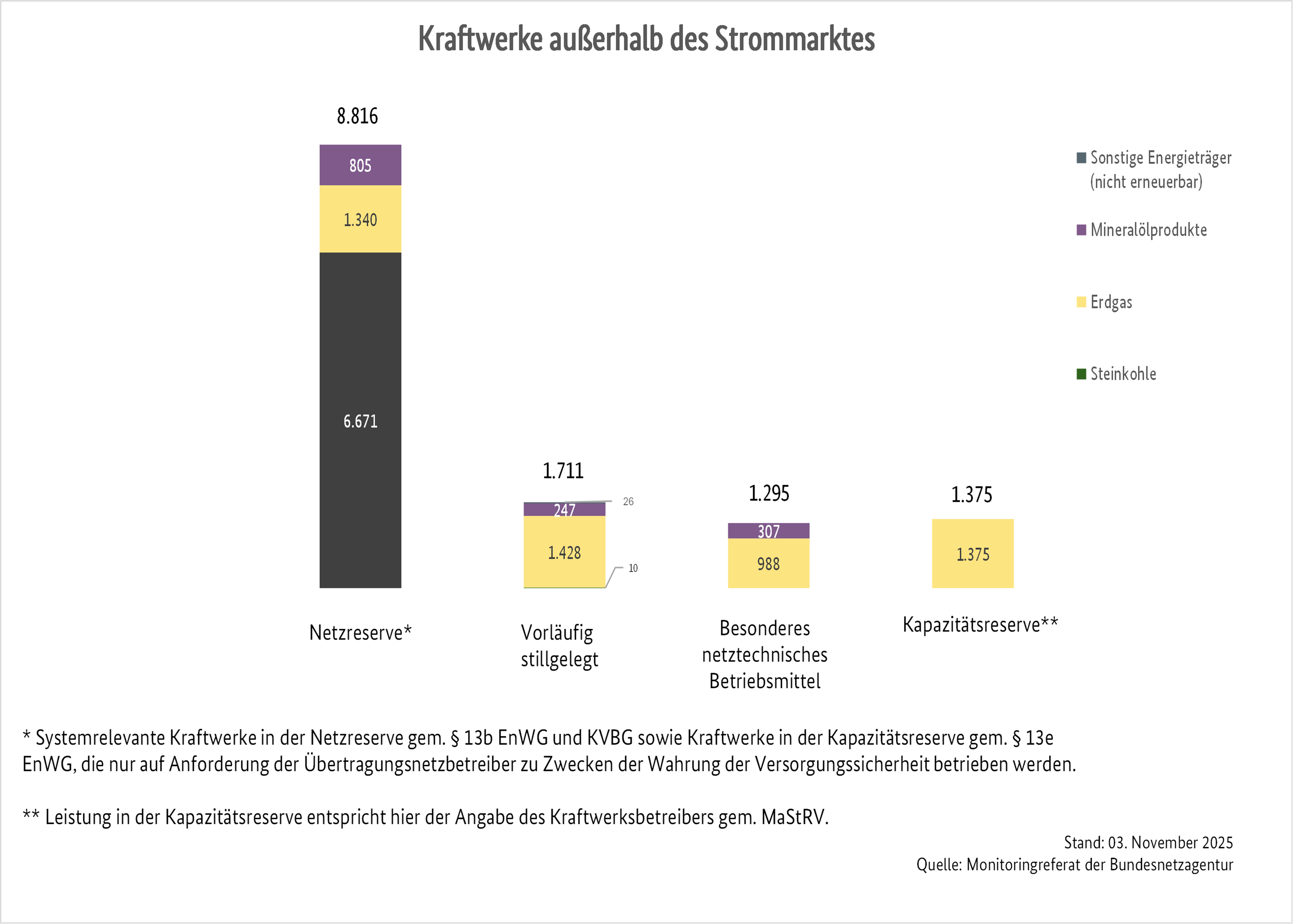 Owing to the plants' importance to security of supply, the Bundesnetzagentur also publishes key data on: